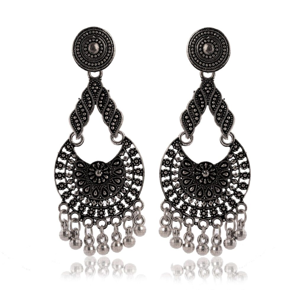 Women’s Traditional Silver AZ838-OXidised Chandbali Ethnic Design Jhumka/Jhumki Earrings for Women